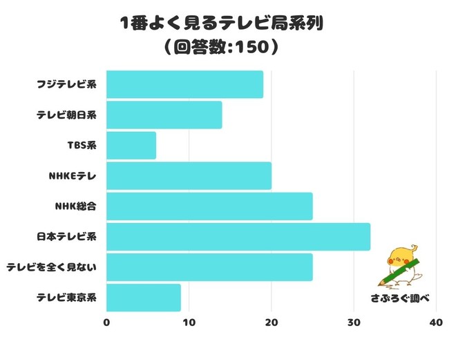 1番よく見るテレビ局系列をアンケートにて調査したところ、1位は「日本テレビ系」でした