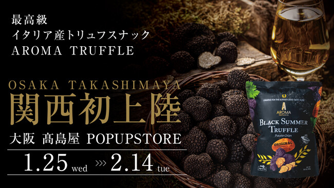 わずか数年で世界十数カ国へ展開し、各国のセレブリティや美食家、感度の高いインフルエンサーの間で話題となってい るシンガポール発のグルメスナック菓子「AROMA TRUFFLE(アロマトリュフ)」昨年4月に日本に初上陸した 本ブランドが遂に関西に初上陸します。