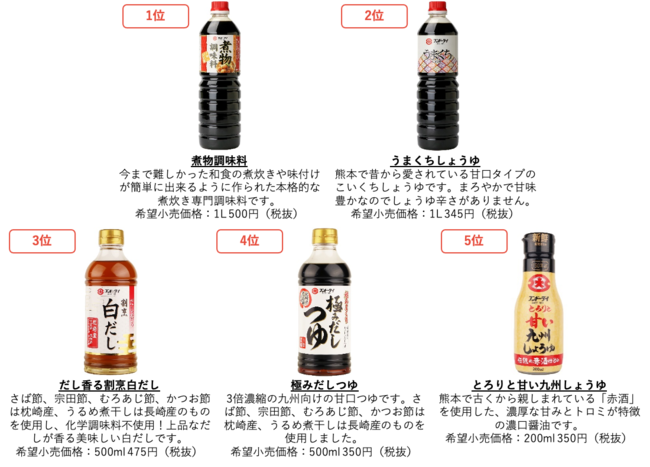 最後に、煮物料理に欠かせない当社の人気調味料をランキング形式で一部ご紹介いたします。ぜひ「煮物の日」に味が決まった美味しい煮物料理にチャレンジしてみてください。