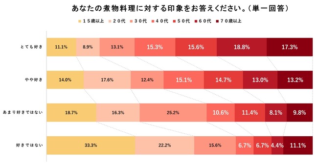 【5】 煮物に対する印象、40代以上が好む傾向が急増