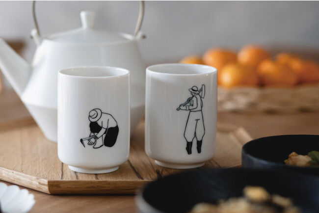 湯呑のお茶は熱々で、それで手を温めながら、冷めてきたらいただく。そのひとときが至福ではないかと思います。イラストレーター・たかなつめさんのイラストで、コタツやみかんに合う湯呑をつくりました。