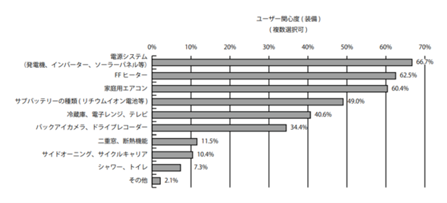キャンピングカー搭載装備として66%以上のユーザーが「電源システム」へ関心を寄せる
