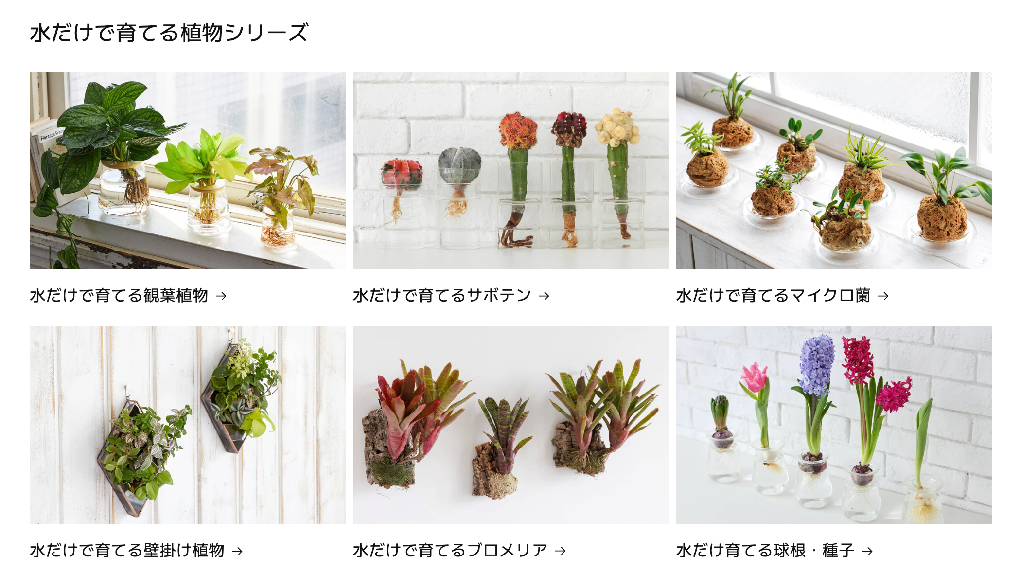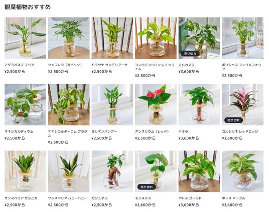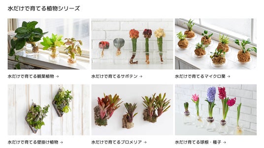 ・【主な取扱商品】水だけで育てる観葉植物、サボテン、マイクロ蘭、ブロメリア、球根・種子、壁掛け植物、アボカド栽培Vase、枝ものVase、水耕栽培用器具 など