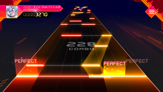 本作ではより沢山の方々にプレイして頂けるように、音楽ゲームに慣れていない方でもプレイしやすいゲームシステム・デザインを取り入れております。メインのゲーム画面ではノーツがレーンに沿って落ちてくる方式を採用し、直感的に理解しやすく楽しめるUIデザインを心掛けました。