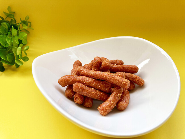 研究と試作を重ね、刺激的な中にも旨みのある味わいを追求し斬新な一品ができあがりました。かりんとうのご利用シーンの拡大を期待し、おやつだけでなく家飲みのおつまみにも合うように甘さ控えめに仕上げた商品です。