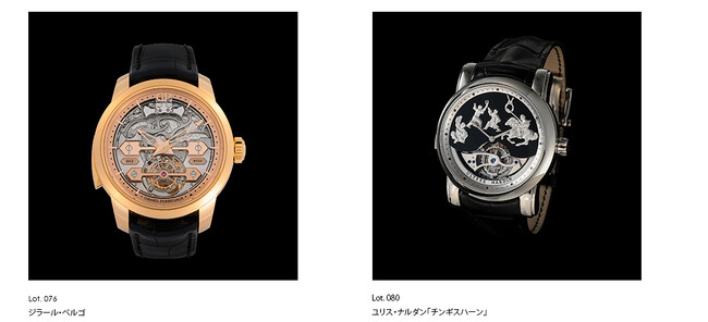 ■その他、時計ではトゥールビヨン、ミニッツリピーターを搭載したジラール・ペルゴ「ゴールデンブリッジ」、ユリスナルダン「チンギスハーン」、ロレックス、フェルナント・ベルトゥーの希少モデルが出品される。