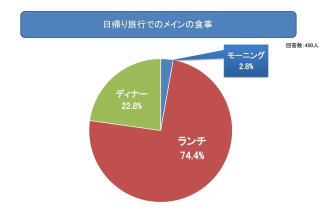 メインとする食事は74.4%が「ランチ」と回答をしており、帰路の時間に影響がある「ディナー」に関しては22.8%にとどまる結果となりました。