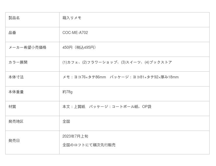 ナカバヤシ株式会社(本社:大阪市中央区、社長:湯本秀昭)はお店のようなデザインのパッケージに入って、机を楽しく彩るメモシリーズ「箱入りメモ」を2023年7月上旬より全国で発売いたします。また、発売に先がけ全国のロフトにて順次先行販売いたします。