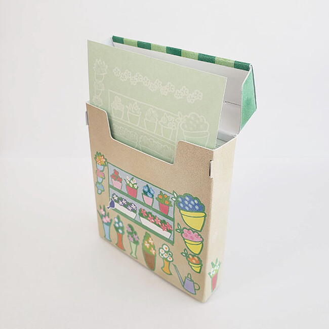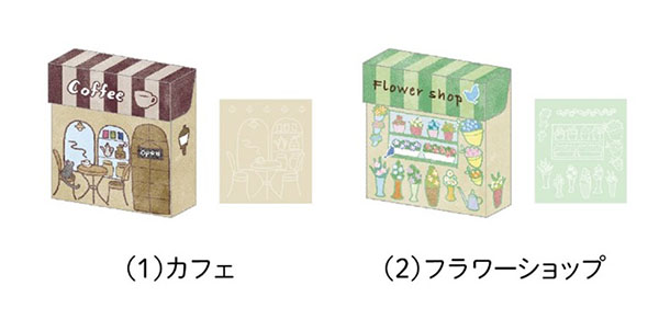 「箱入りメモ」は、カフェ、フラワーショップ、スイーツショップ、ブックストアのお店をイメージしたパッケージデザインが可愛いメモシリーズです。