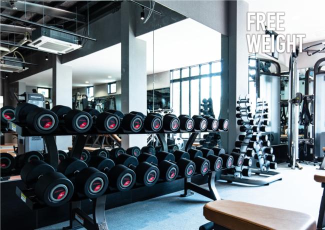 広々とした余裕のある店内に、様々な筋トレ&有酸素マシンを設置、フリーウエイトも充実しています。