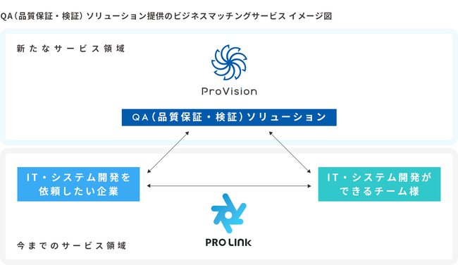 株式会社ProVision(横浜本社:神奈川県横浜市、社長:佐藤 瞳、以下:ProVision)が提供するIT案件に特化したビジネスマッチングサービス「PROLINK(プロリンク 以下:PROLINK)」が、QA(品質保証・検証)ソリューションをプラスして更に魅力的になりました。国内のIT/BtoB企業向けビジネスマッチングサービス業界では、初めてのサービスです。※国内のIT/BtoB企業向けビジネスマッチングサービス調査(2022年5月自社調べ)