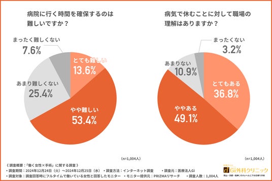 そこで今回、鼠径ヘルニアの日帰り手術専門クリニック『Gi(ジーアイ)外科クリニック』(https://gi-clinic.net/)を運営する医療法人Giは、フルタイムで働いている女性を対象に、「働く女性×手術」に関する調査を実施しました。