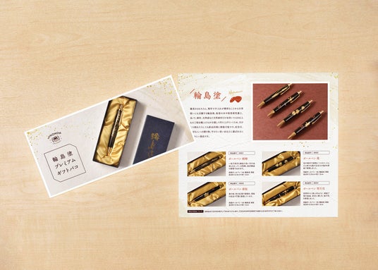 元旦の能登半島地震、続くこの秋の豪雨により河川の氾濫で甚大な被害を受けた能登・奥能登ですが、輪島市で負けずに事業を継続している『大藤漆器店』があります。輪島市で発展してきた輪島塗は、他に類を見ないほどの堅牢優美さで、震災の中でも力強く美しく残った輪島塗から、前を向き続ける能登人の誇りが感じられます。今回じのもんギフトバコは、緊急に「がんばろう能登」企画の一環として、被害を受けた大藤漆器店の輪島塗を送って応援できる『輪島塗プレミアムギフトバコ』を発売します。輪島塗のお箸と、伊勢志摩サミットの首脳会議で採用された高級蒔絵ボールペンの2コース(各4種類)が掲載されたカタログから、お好きな商品を選んでいただけます。