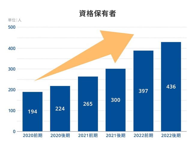 技術社員の資格保有者数は3年間で2.2倍に増加!