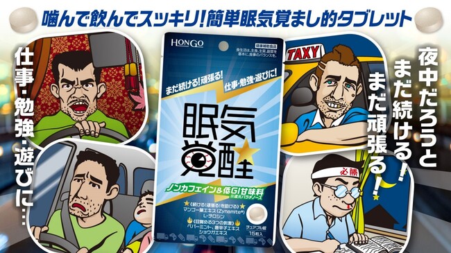 サプリメント・化粧品メーカーの株式会社Hongo(本社:東京都文京区/代表取締役社長:村田 聡)は、2023年9月27日(水) より、ノンカフェイン眠気対策タブレット「眠気覚醒★」を応援購入サービス「Makuake(マクアケ)」にてプロジェクト開始いたします。