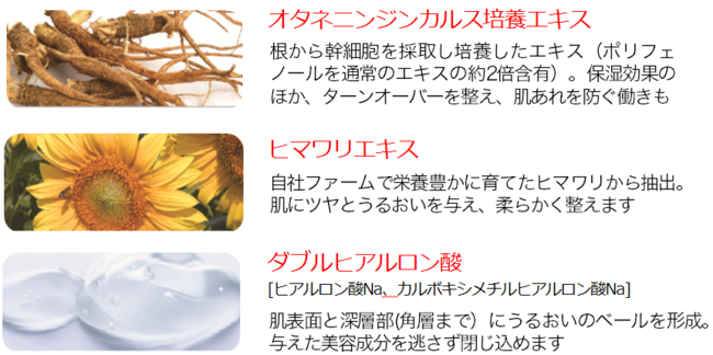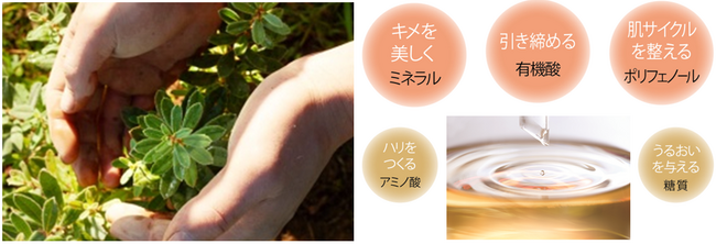 自社ファームで育てたパワフルな北方系植物に発酵の力を掛け合わせて開発したVEGAL(R)*。発酵により、ポリフェノールや有機酸など肌に必要な成分が絶妙なバランスで調和し、美しさの決め手となる“肌のうるおい貯水力”を高めます。今回、新たなエキス製造方法を確立することで、VEGAL(R)*の美容成分の含有量を約1.4倍※にアップし、柔らかな質感のマスクにたっぷりと染み込ませました。