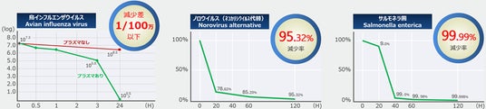 近年、社会問題にもなっている鳥インフルエンザウイルス、急性胃腸炎や食中毒の原因となる、ノロウイルスやサルモネラ菌など、感染率が高く事業活動や人的被害につながる細菌を攻撃し撃退します。