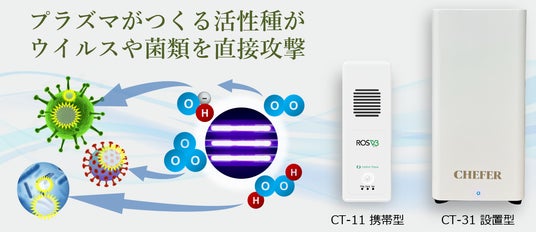 「CHEFER AIR CT-31」は、ウイルス不活化や除菌効果をもたらすプラズマ活性種エアーの生成効率を向上させ、同時にご提供価格についても従来のCT-21より約20%ダウンし、よりお求めやすい価格に設定しております。