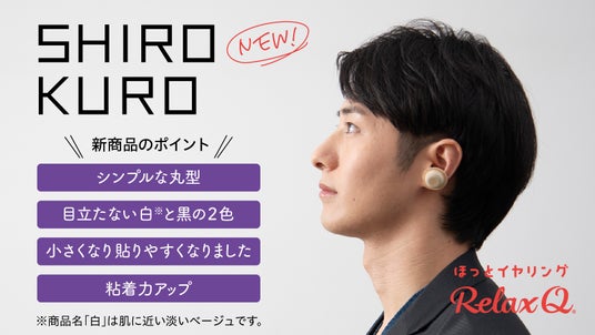 「フェリック株式会社」(栃木県小山市、代表取締役・宮下洋一)は、生活を豊かにする商品を開発し続けています。自社ブランドの耳を温める温活グッズ「RelaxQほっとイヤリング」の新商品「RelaxQほっとイヤリングSHIRO・KURO」の店頭及び公式サイトでの販売を3月4日に開始いたしましたので、お知らせいたします。この商品は、シンプルなデザインの丸型であり、目立たない色の白と黒で、男性にもより使いやすくなった特徴があります。さらには粘着力がアップして、落ちにくくなりました。新商品の特徴として、商品の詳細や商品ロゴ、パッケージデザイン、製品サイズなどがあります。