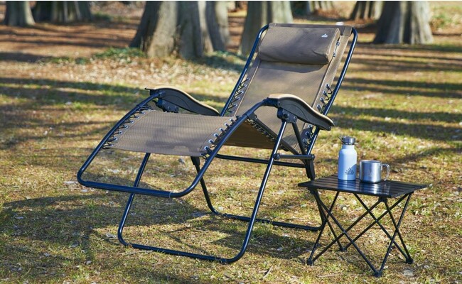 リラックスした姿勢で座れるアウトドア向けリクライニングチェアです。肘掛けに天然木を使用し、良い肌触りに仕上げています。