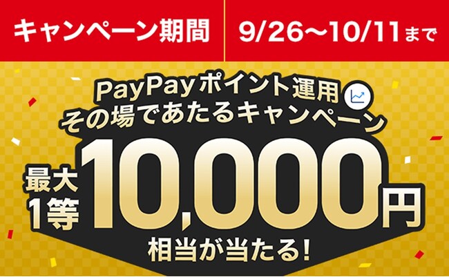 PPSCインベストメントサービス株式会社※1(東京都千代田区、代表取締役社長:関口 幸哉)は、キャッシュレス決済サービス「PayPay」内のミニアプリ※2上で疑似運用体験ができるサービス「ポイント運用」において、「ポイント運用その場であたるキャンペーン」を2022年9月26日(月)から10月11日(火)まで実施します。