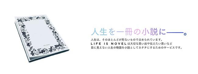 Life is Novelは、顧客の人生を文学賞の選考通過実績をもつ作家陣が小説として綴り、文庫本に製本後、お届けするサービスです。想いや思い出をカタチにして残すため、またはギフトとして、結婚式・金婚式・転職・終活といったシーンで利用されてきました。