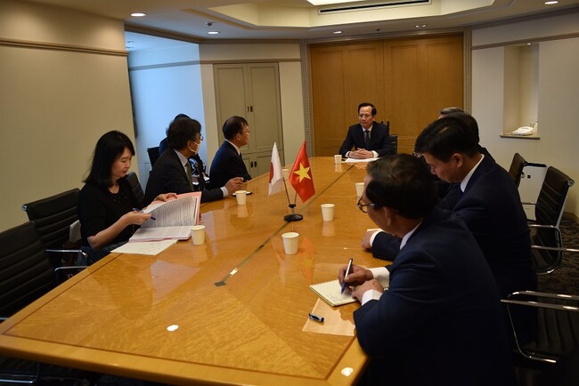 ズン大臣からは、1992年に最初に討議議事録をJITCOと結んで以来、JITCOによって実施された様々な事業活動を高く評価し、特に2012年からコロナパンデミック前までの2019年の間にDOLABとの友好的な協力関係に基づき、多くのベトナム人の受入れが行われたことに謝意が示されました。日本の受入れ側に対しては、ベトナム技能実習生、特定技能者の労働安全・生活環境を確保し、円安の影響もあり収入改善をしていただきたいとの期待が表明されました。また、来日者に金銭的負担を強いることになるブローカーを排除するためベトナムの新法でブローカー排除を規定したこと、国際協力機構(JICA)との間で「ベトナム人の就労のためのプラットフォーム」(仮称)設置を検討しているとの説明がありました。ベトナム政府としては、技能実習とともに特定技能についても今後も促進していくつもりであり、遅れている特定技能のベトナムにおける試験実施について、今後日本側と協議する旨説明がありました。最後に日本・ベトナム国交樹立50周年となる来年に向けベトナムを訪問して欲しいとの要請がJITCOに対してありました。