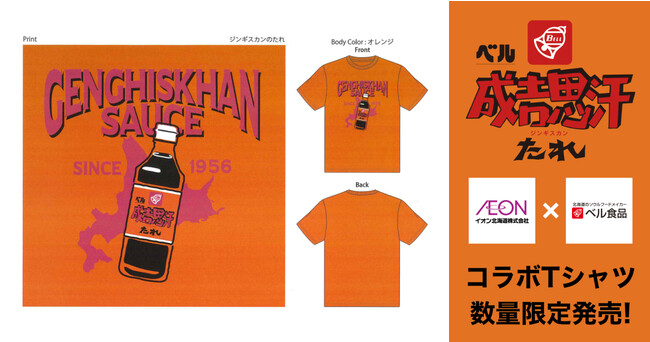 「成吉思汗たれ」「ラーメンスープ華味」「スープカレーの作り方」「ザンギ名人」など、北海道のソウルフードをご家庭で味わうためのたれ、つゆなどを製造販売する「北海道のソウルフードメイカー」ベル食品株式会社(本社:北海道札幌市西区、代表取締役社長:福山浩司、以下ベル食品)は、イオン北海道株式会社(本社:北海道札幌市白石区、代表取締役社長:青柳英樹、以下イオン北海道)とコラボし、ベル食品のロングセラー商品である「成吉思汗たれ」をデザインした「ご当地企業コラボTシャツ」を制作。イオン北海道は3月24日より道内34店舗にて数量限定にて順次販売を開始します。