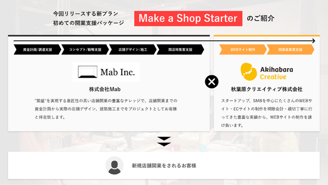 株式会社Mabとの業務提携に伴い、初めての開業支援パッケージ「Make a Shop Starter」の提供を開始します。