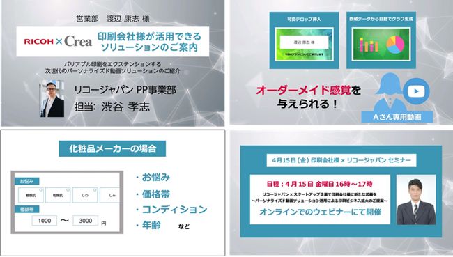 今回、リコージャパン様、クイックス様の印刷技術やDM制作の知見を活かし、そこにクリエの動画DXソリューション「PRISM」を組み込み、セミナー集客ソリューションとして開発しました。