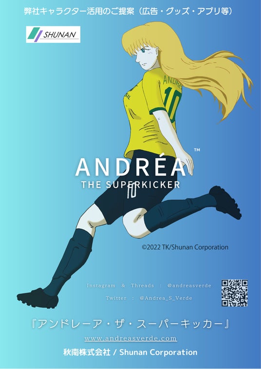 『アンドレーア・ザ・スーパーキッカー』は、弊社オリジナキャラクター「アンドレーア・シモン・ベルジ」を主人公にしたストーリーで、サッカー選手としての彼女の成長を描いています。さらに、物語の魅力を存分に楽しむために、特設サイトや公式SNSアカウントも開設しております。