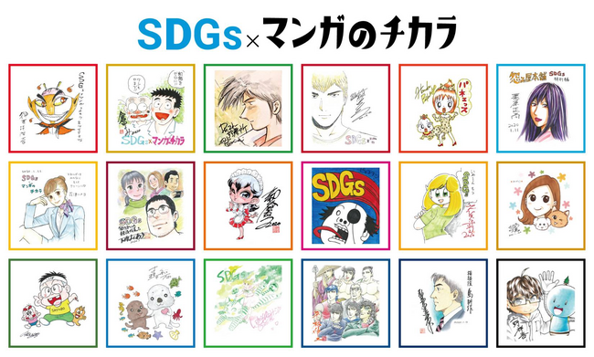 ■出品物:『マンガで世界を救うぞ!SDGsマンガ化計画』寄稿漫画家イラスト入りサイン色紙 17枚