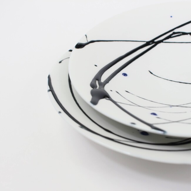真っ白い白磁の素地に釉薬で抽象的に描かれたデザインが伝統の中にもモダンさを感じる逸品。卓越した轆轤(ろくろ)の技と偶然性が織り成す唯一無二のデザインに魅了されてしまいます。インスタ映えするプレートとしてもおすすめです。