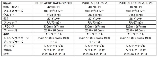 また、オリジナルモデルとして、バランス、重さ、硬さなどナダルが実際にツアーで使用してきた実戦モデルと同じスペックで展開します。