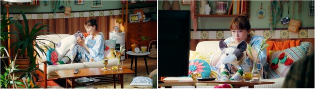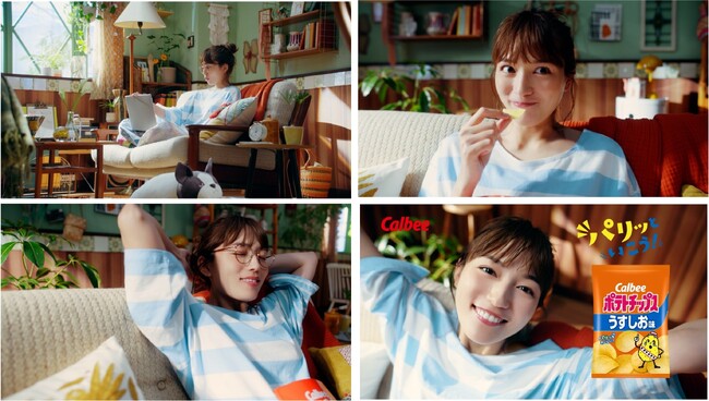 昔からおなじみであるカルビーポテトチップスのサウンドロゴに合わせて、川口さんが「のんびりしている時」「仕事の合間の一息」「映画で感動している時」にポテトチップスをパリッと食べ、様々な表情を見せつつおいしさに満たされていきます。今回は川口さんのおうちでのオフモードな雰囲気を演出すべく、あえてラフな衣装や髪型で撮影に挑んでいただきました。また、今回は実際に川口さんがいつも移動など常に持ち歩いているという私物の犬のぬいぐるみとCM内で初共演しています。川口さんの可愛らしい表情はもちろんのこと、ポテトチップスの食べ方やパリッとした音や、川口さんの一人暮らしのお部屋をイメージした美術などにも、ぜひご注目ください。