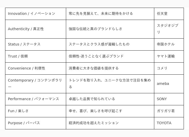 ブランドが人々の生活や行動に強い影響を与える9つのグローバルな特徴を特定し、以下に9つの特徴の説明と影響力の高い日本ブランドの例をリストしました。