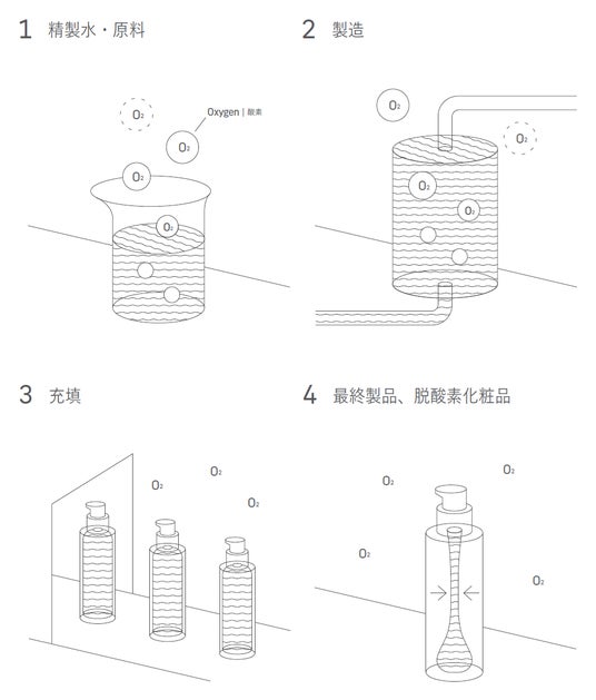 鮮度へのこだわりから生まれた「脱酸素製法(R)」は、すべての製造工程で酸素を取り除くことにより、デリケートな成分を安定的に配合する技術です。