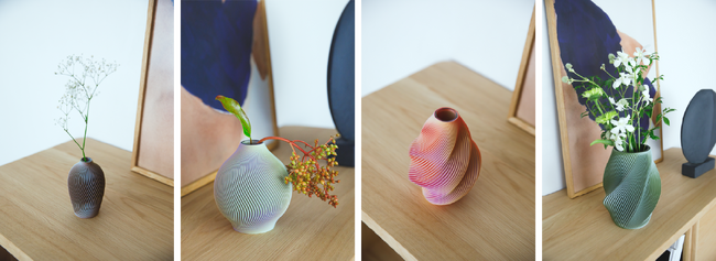 POPUP STORE内には色彩豊かなフラワーベースやアクセサリーの販売をはじめ、3Dプリンターでアイテムを制作する過程をご覧いただけるラボスペースも併設。POPUP STORE限定で、アイテムのカラーカスタマイズも店頭でお受けしております。あなたらしい生活を彩るアイテムをぜひご覧ください。