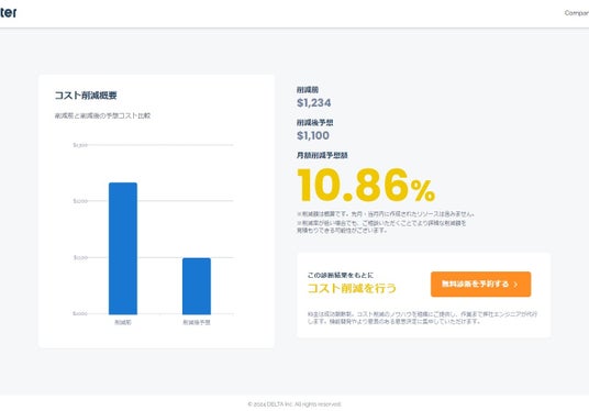 このたび、DELTAが提供してきた150社以上の診断実績に基づくノウハウを活かし、専門知識がなくても直感的かつ簡単な操作でコスト削減可能性を診断できるサービスとして「FinOps booster」を開発しました。これにより、誰でも手軽に自社の環境にコスト削減の余地があるかを知ることができる環境を提供します。