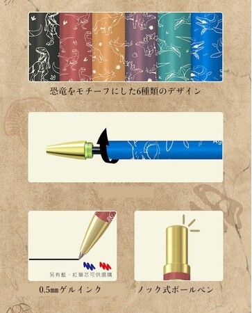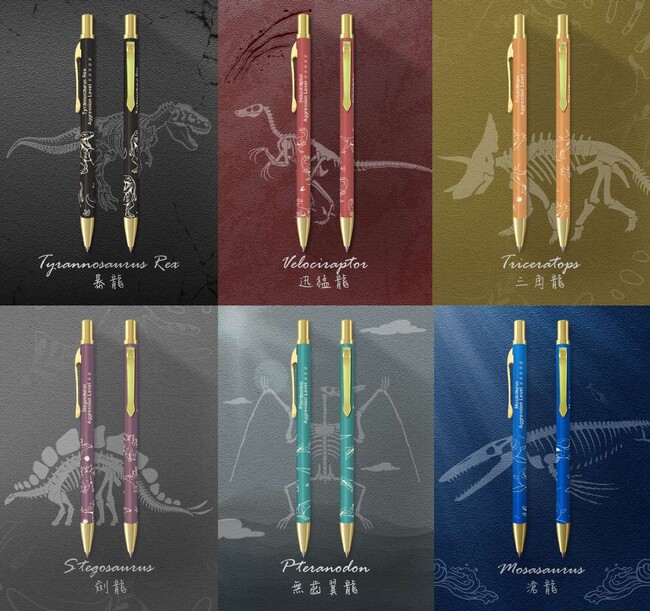 「レトロ恐竜時代」は、さまざまな恐竜種をフィーチャーしたデザインが特徴的、これらの古代の生き物をボールペンの形で蘇らせています。