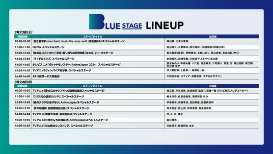 「AnimeJapan 2024」BLUE STAGE LINEUP