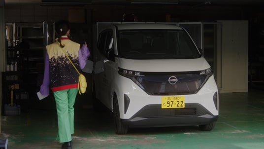 本日公開の第1話「かんたん家充電」では、ドラマ本編第1話終了後の物語として、出勤直後に剣からおつかいを頼まれた杏奈が登場。キッチン白鳥の駐車場へと向かい「日産サクラ」の充電を杏奈が確認すると、しっかりと充電が完了していることに驚き、スムーズに出発できる家充電スタイルに喜ぶ姿が描かれています。