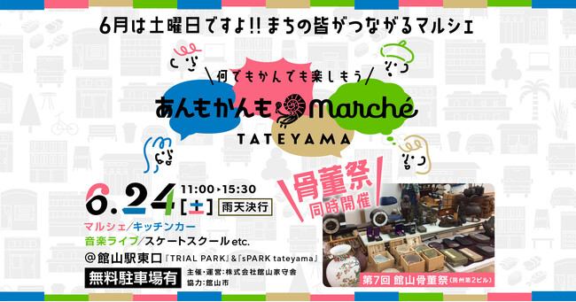 株式会社館山家守舎(たてやまやもりしゃ。本社:千葉県館山市、共同代表 本間 裕二・漆原 秀。以下、当社。)は館山市から令和4年度館山リノベーションまちづくり事業を受託し、計4回、地域グルメや音楽が楽しめる「あんもかんもMarche」を開催した。今年度、令和5年春からは、民間の当社が主催する事業として始動。6月の開催は2023年6月24日(土)で、館山駅東口駅前に昨年秋に新しく誕生したパブリックスペース "sPARK tateyama"が開催場所となる。