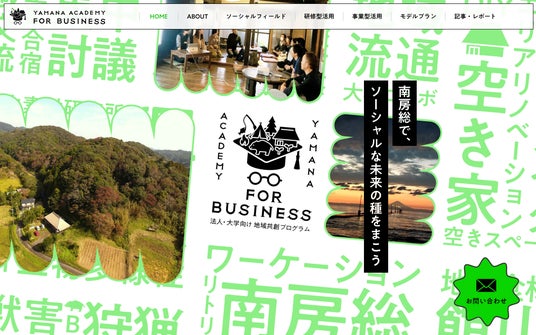 千葉県南房総で「社会課題」や「地域資源」をベースとしたプログラムを展開してきた「ヤマナアカデミー」(運営:合同会社AWATHIRD)はこのたび、法人向けプラットフォーム『ヤマナアカデミー for Business』を始動しました。企業・大学・自治体と地域の実践者が交わる“社会実験の場”として立ち上げた取り組みであり、これからの時代に必要な働き方や人材育成、事業開発を進めるうえで、地域資源・地域課題を活用できる仕組みです。学び・対話・実践・共創活動を推進し、地域のリアルを体験し、本質的課題や社会価値に目を向けるプログラムを、カスタマイズ型で提供します。