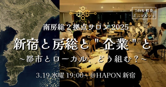 東京・新宿で開催される「南房総2拠点サロン」は、南房総エリアと関わる人、関わりたい人が気軽に集い、交流のできる場をつくるということをコンセプトにしています。2018年から現在まで19回開催。