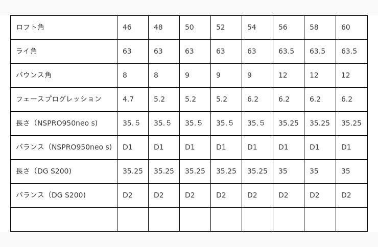 クラブ重さ N.S. PRO 950GH neo S 46~54 (443g) 56~60(447g)