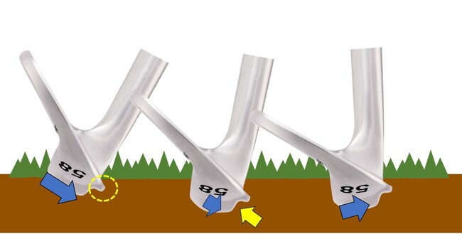 しかし、地面に入るとすぐにソールの壁が抵抗となり決して深くは入らない