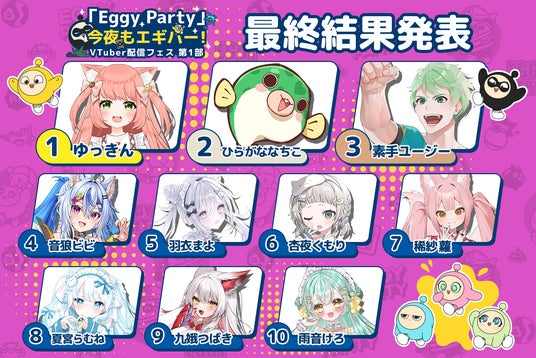 今回のイベントではAttendMeからキャスティングされた総勢30名のVTuberが動画配信やYouTube Shortsを通して『Eggy Party』をプレイし、約2週間の間Eggy Partyの魅力を発信し続けました。またイベント期間中はVTuberとそのリスナーがタッグを組んで1位を目指す参加型配信やVTuber同士のコラボ配信も活発に行われ、Eggy Partyを通して多くの人が交流を深めたイベントとなりました。