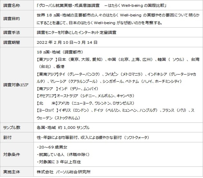 株式会社パーソル総合研究所(本社:東京都港区、代表取締役社長:萱野博行)は、「グローバル就業実態・成長意識調査 -はたらくWell-beingの国際比較」の結果を発表します。