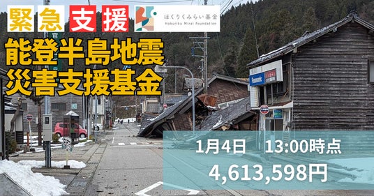 公益財団法人ほくりくみらい基金(代表理事:永井三岐子)が運営する「令和6年能登半島地震 災害支援基金」が、1月2日21:00の受付開始から2日で460万円を突破しました。また、1月4日13:00より、銀行振り込みでの受付も開始しました。